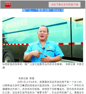 北京日报(2019年1月2日第6版)对环卫集团进驻回天地区提供环卫保障服务进行报道。