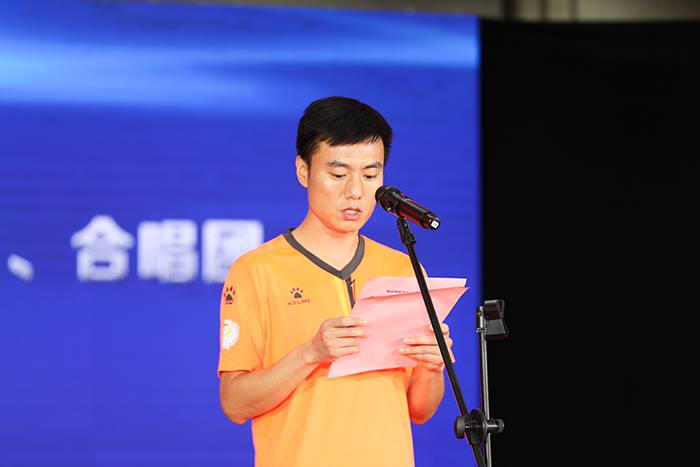 金年汇足球队领队栗增宣读《足球队章程》及主要成员名单