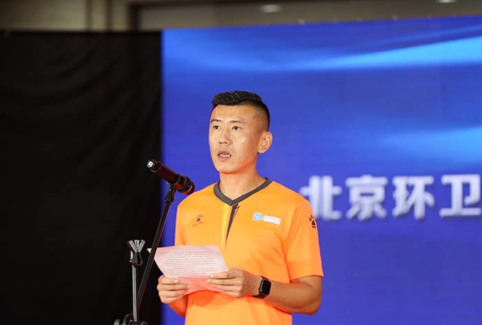 金年汇足球队队员代表、固废物流公司员工王洋发言