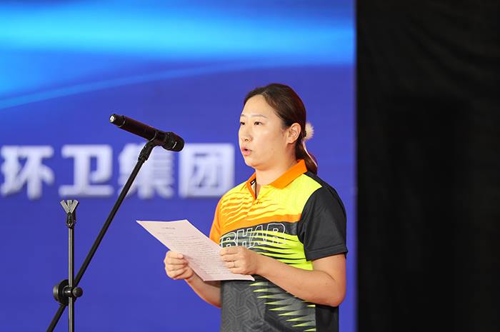 金年汇乒乓球队队员代表、微环境公司员工盛丹丹发言