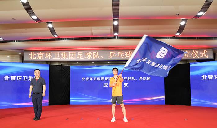 集团党委书记、董事长高踪阳为金年汇乒乓球队授旗