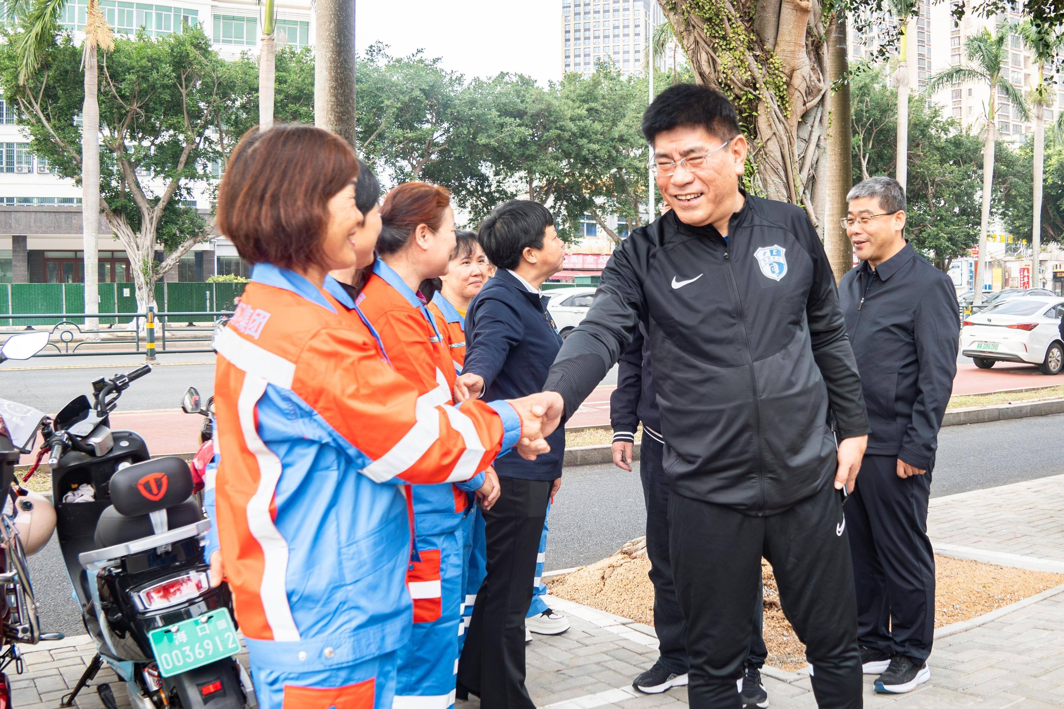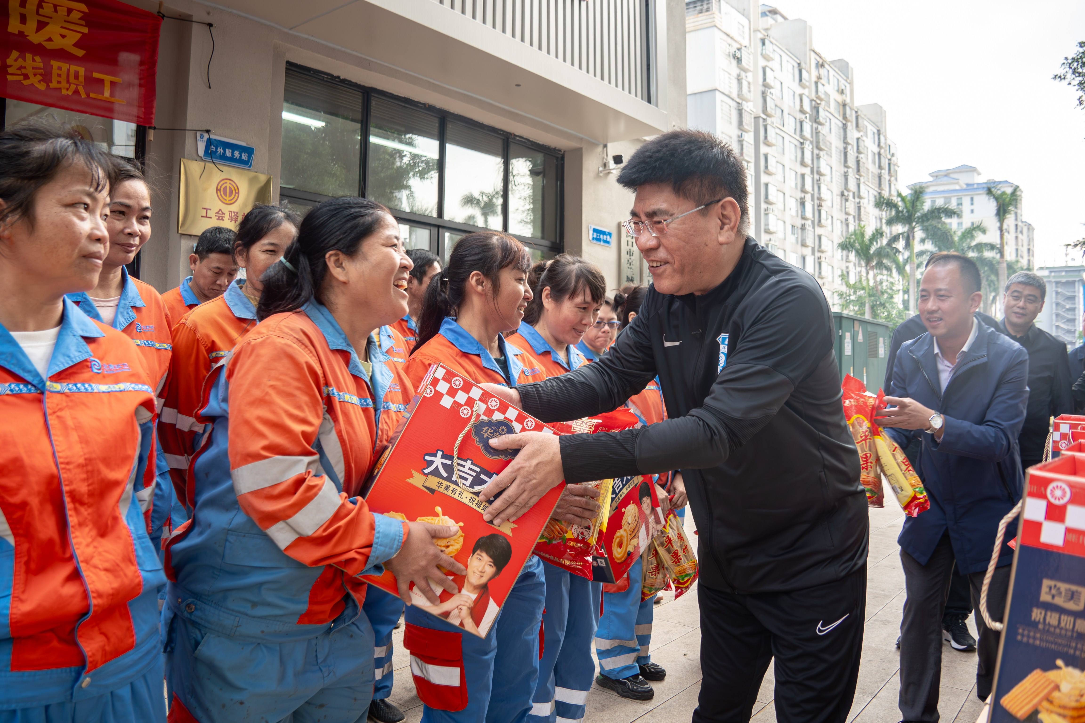 12月17日,高踪阳同志一行深入作业一线开展“心系一线 千里送暖”慰问活动,向长期奋战一线的环卫职工送上慰问品,对海南分公司广大干部职工的辛勤付出和坚守奉献表示衷心感谢,并提前送上节日祝福,叮嘱大家注意劳逸结合,让一线职工深切感受到“金年汇”大家庭的温暖。